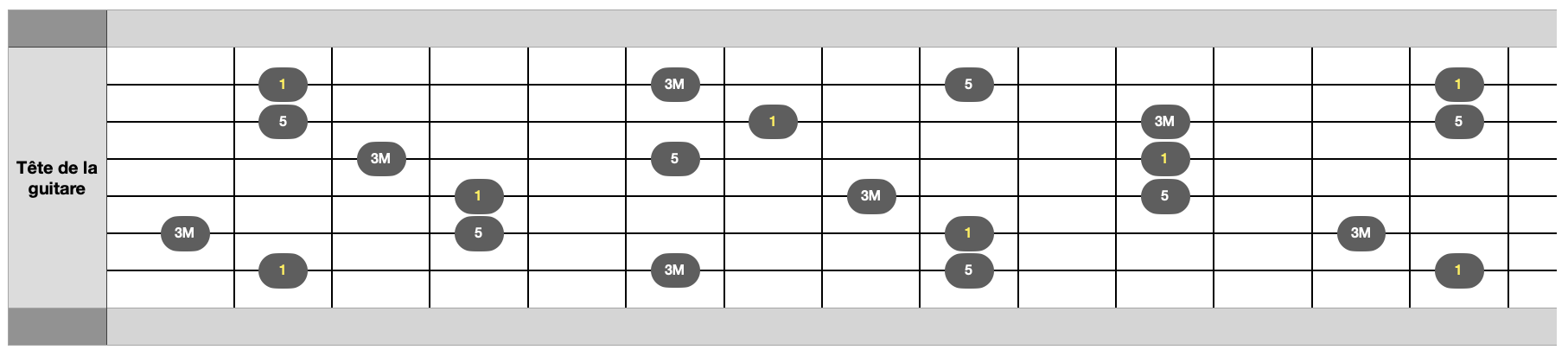 Les degrés de la triade augmentée sur le manche de la guitare: