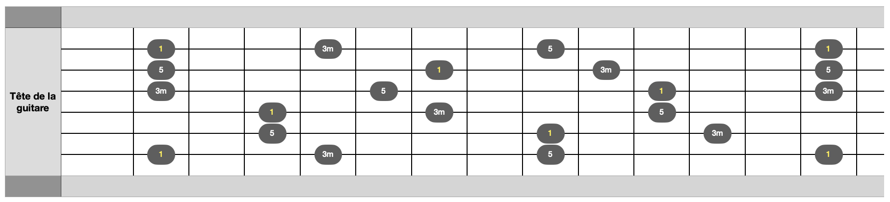 Les degrés de la triade diminuée sur le manche de la guitare: