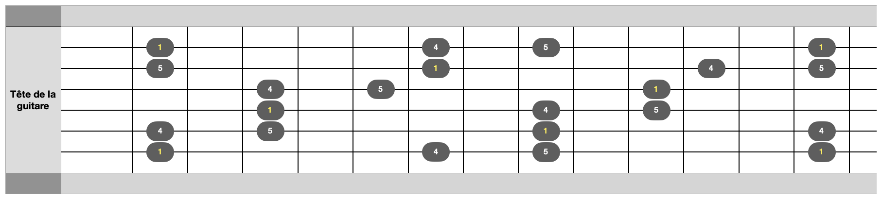 Pour chaque gamme, le livre pour la guitare est structuré comme ceci: